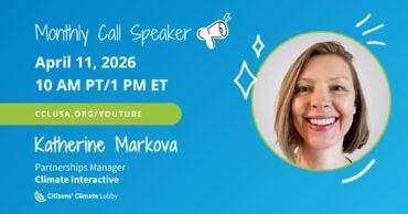 March 15, 2026Join us for CCL’s April Monthly Meeting featuring guest speaker Katherine Markova. As the Partnerships Manager of Climate Interactive,...